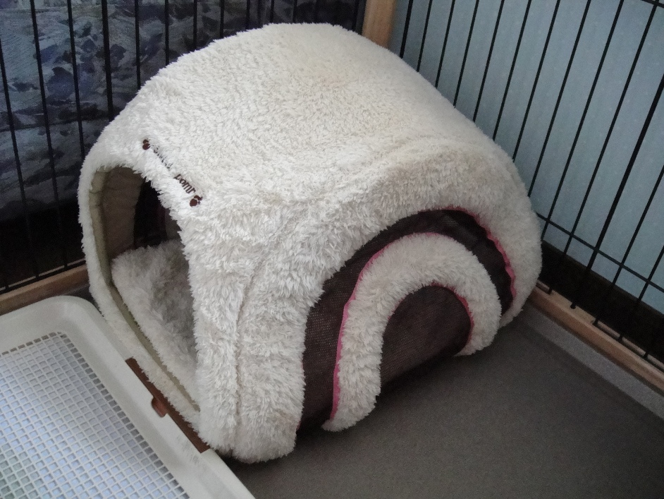 叱られるとサークルに逃げ込み、自分で中に入って天井を起こし、この中に避難します