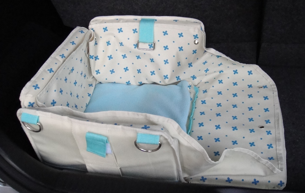 冬は標準装備のフェイクファーベッドをセットし、寒いときはフェイクファーベッドの中に、さらにオプションのヒートパッドをセットして使います。