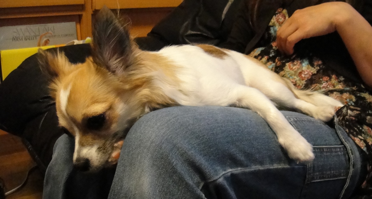 隣に、毛がボサボサのいかにもメタボってそうなチワワちゃんがいました。