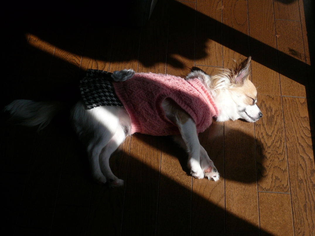 そして、今はヒーターの前に寝ころんで、気持ち良さそうに寝ています。