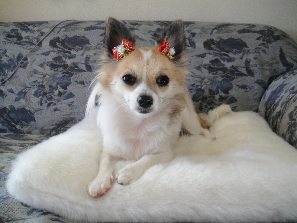 )、トリマーさんに大変ご迷惑をおかけしたのですが、今回はおとなしかったそうで、時間も前回より短く早く終わりました。前回着けられなかった頭のリボンも、今回は着けてもらえました。