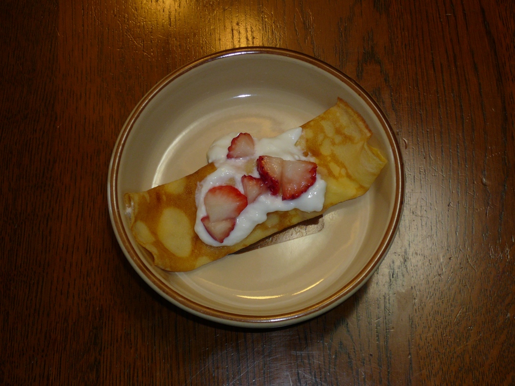 LUNAの今日のおやつは、イチゴとヨーグルトのクレープです。